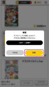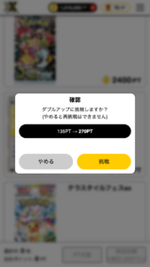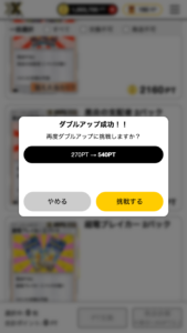 ※ ダブルアップは1回の発生で最大3回、または挑戦額が10万ptを超えるまでとなります